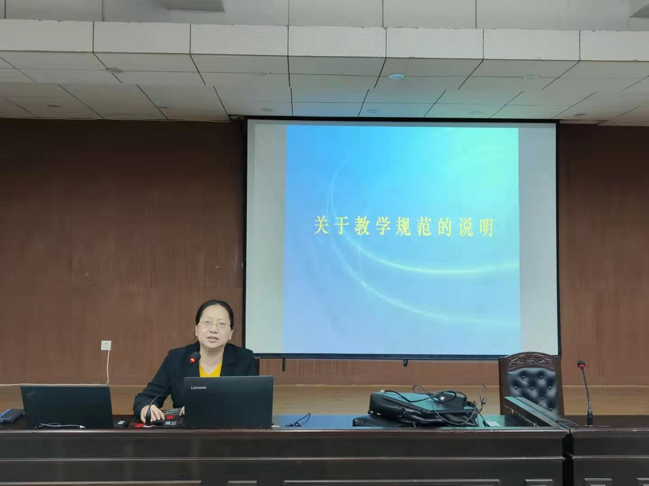 教学督导组主任陈锦红老师介绍了教学基本规范。她向与会老师从课堂宗旨,评价标准、课程考核等方面介绍了教学竞赛的基本情况。随后,陈老师具体介绍教学内容、教学手段、教学态度、教学评价等具体的规范要求。她倡导,法学学科要充分挖掘课程思政的元素,积极围绕教学目标,推进教学改革,力争建成更多融合思政元素、育人效果明显的课程思政示范课程。