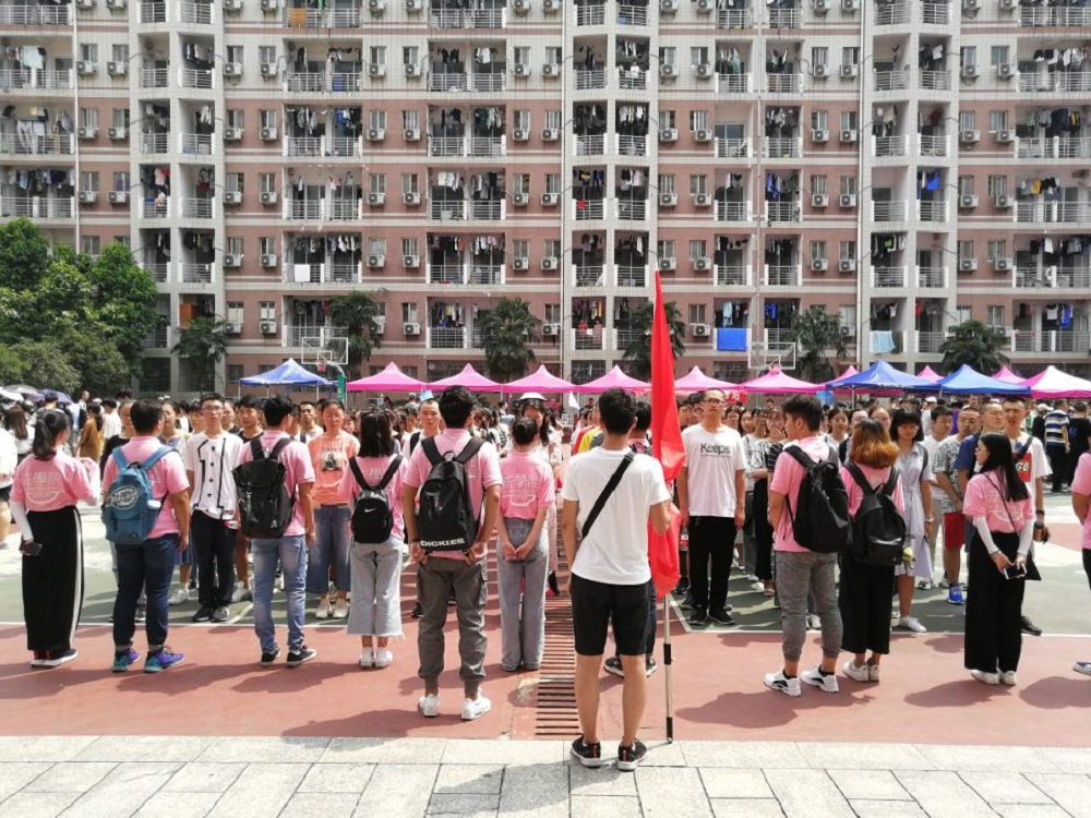 (同学们第一次在天马学生公寓列队集合)