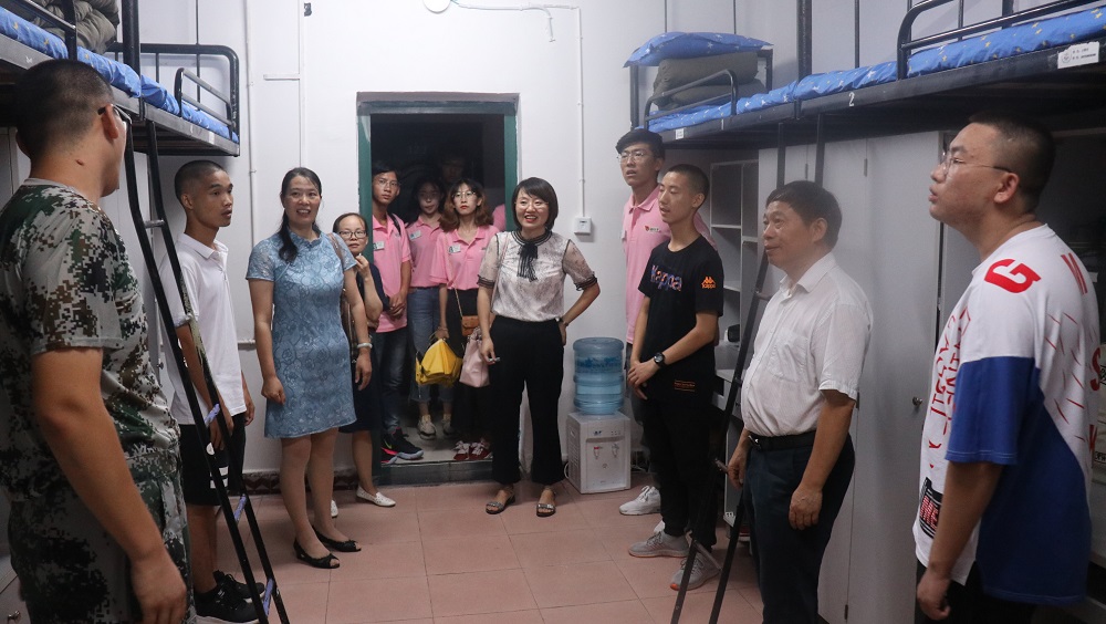 党委书记易骆之、党委副书记、纪委书记罗英、本科生教务秘书李丽红在2019级辅导员郑琼英的陪同下来到天马学生公寓,走访2019级新生寝室,看望慰问新生和迎新团队全体同学。“大家都作下自我介绍吧,来自哪些地方?”易书记进入寝室与每位新生进行交谈。罗书记和郑老师询问大家是否适应长沙的天气,表示如果有任何困难都可以寻求老师们的帮助。李老师也表示今后在学习生活中会和同学们密切接触,教务处的老师们也会做好服务同学的工作。军训期间条件艰苦,老师们鼓励各位同学一定要用坚强的意志克服困难,坚持就是胜利,同时也要搞好寝室团结,大家一起相互鼓励,共同进步。院领导亲切的关怀和激励的话语,让同学们都充满斗志,迎接军训生活。