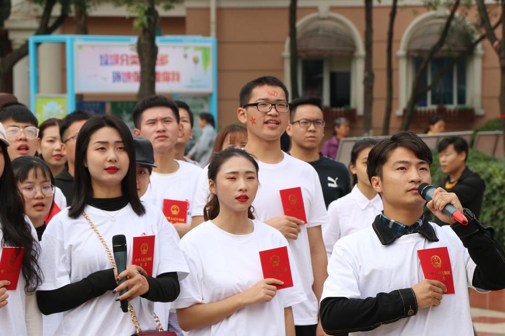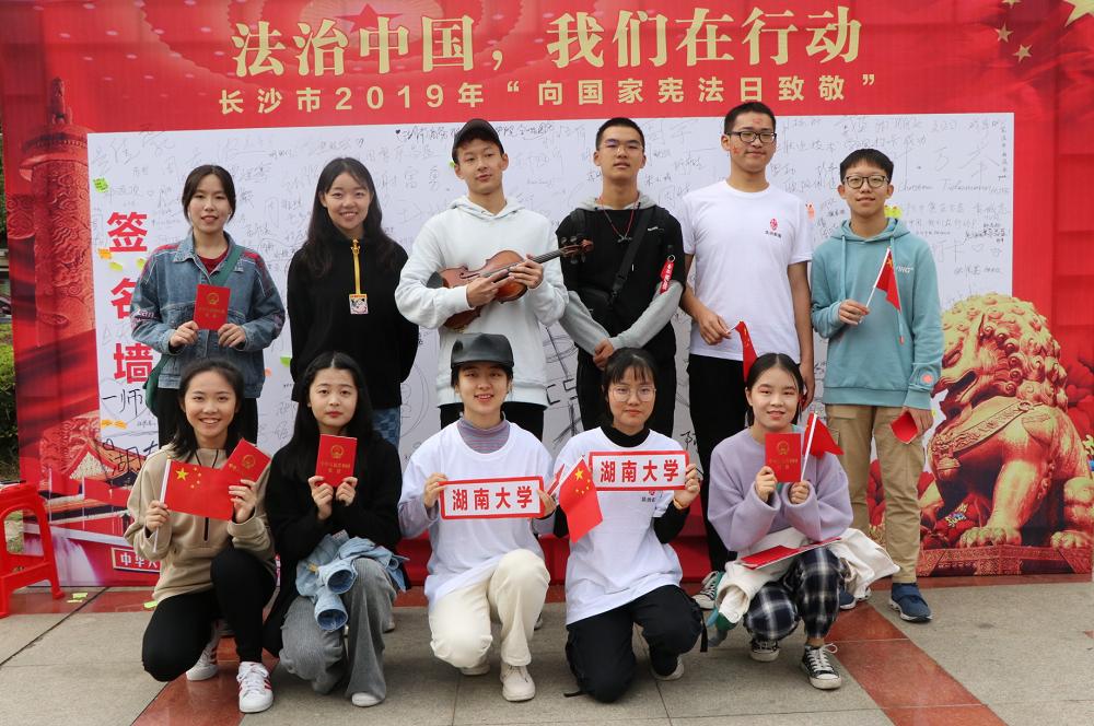 学生在长沙市咸嘉广场参加2019年度“祖国在我心中,宪法伴我一生”快闪活动。本次活动由长沙市司法局主办,岳麓区区校共建大学生法制联盟、长沙市岳麓区司法局、岳麓区咸嘉湖街道共同承办,调教动漫