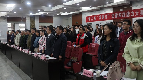 部分领导出席开幕式,来自全国12所高校的代表队参加本届法律实践能力大赛开幕式。