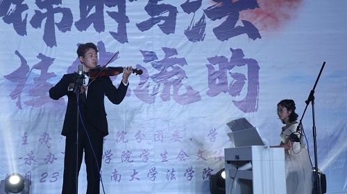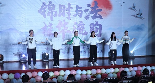 舞台剧《大学老师茶话会》展现出大学辅导员在同学们学习、生活、人际交往等方面的无私奉献,法学1901班同学用生动活泼的表演形式表达对辅导员老师的理解与尊敬,号召同学们在大学期间努力学习、积极进取。赵行、刘睿涵同学带来的乐器合奏《天空之城》让观众徜徉在美妙的音乐世界,感受跳动的音符带来的愉悦与静谧,收获了现场观众持久不息的热烈掌声。法学1903班同学献上歌曲《年少有你》,致敬洋溢激情与甜蜜的青春韶华。法学1904班同学带来的舞台剧《对龙谈法》体现对环境保护与经济发展之间关系的思考,并且融入环境保护法等法学知识,表现调教动漫