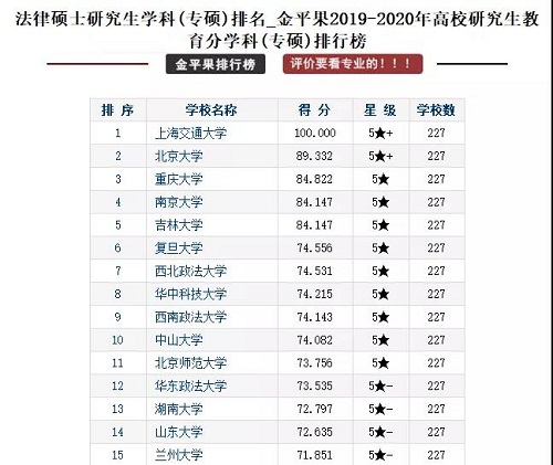的法律硕士获评5星学科。