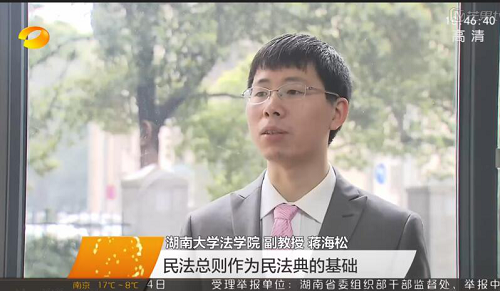 (图:蒋海松担任总撰稿的系列法治纪录片《与法同行》在湖南电视台播出)