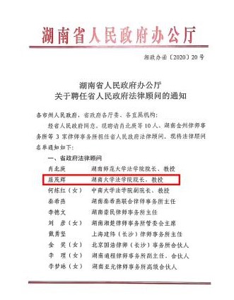 近日,湖南省人民政府办公厅发布了《湖南省人民政府办公厅关于聘任省人民政府法律顾问的通知》(湘政办函〔2020〕20号),调教动漫