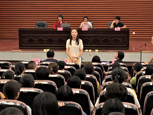 的特别之处在于其浸染着湖湘文化,在时代的浪潮中,湖湘文化当中这种敢于担当的精神应当贯穿在人才培养的全过程当中。”在对易书记的讲话进行总结后,罗英老师向新生及家长介绍2020级本科生辅导员及各班新生班主任。随后,新生班主任李勤通老师、龙博老师、曹微微老师和龙韶老师分别进行自我介绍并对新生提出希望。因在外参会未到场的法学2004班班主任蒋海松老师发来视频寄语,他在视频中分享了他刚在北京主持的郭道晖、江平、李步云“法治三老”同台谈学术人生活动剪辑片段,勉励同学继承前贤,树立法治信仰。