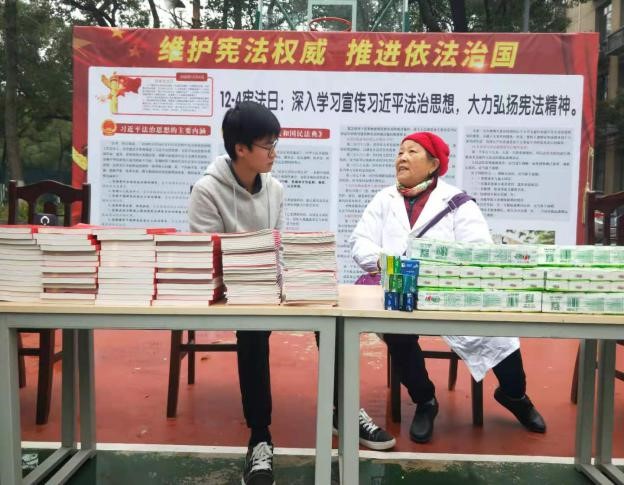 研究生普法志愿者团队向居民发放普法问卷。通过问卷的形式了解居民对宪法及民法的知悉程度,进一步向居民介绍国家宪法日概况、习近平总书记关于宪法的重要论述、《民法典》的制度规定等内容,加强居民对宪法及民法的理解和认同感。最后,普法志愿者还向社区居民发放民法典、宪法书籍100余本,与居民面对面交流,就居民在生活中遇到的法律问题进行答疑解惑。