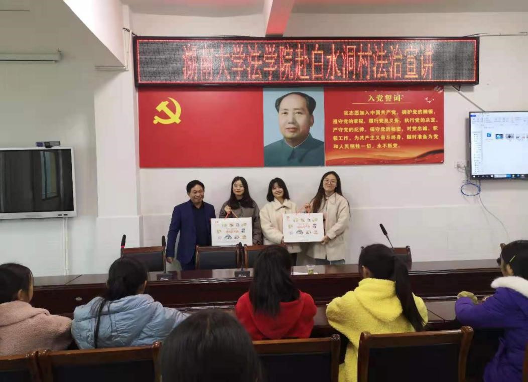 党委书记易骆之代表学院党委向白水洞赫曦小学捐赠《漫话民法典》书籍两套,调教动漫
