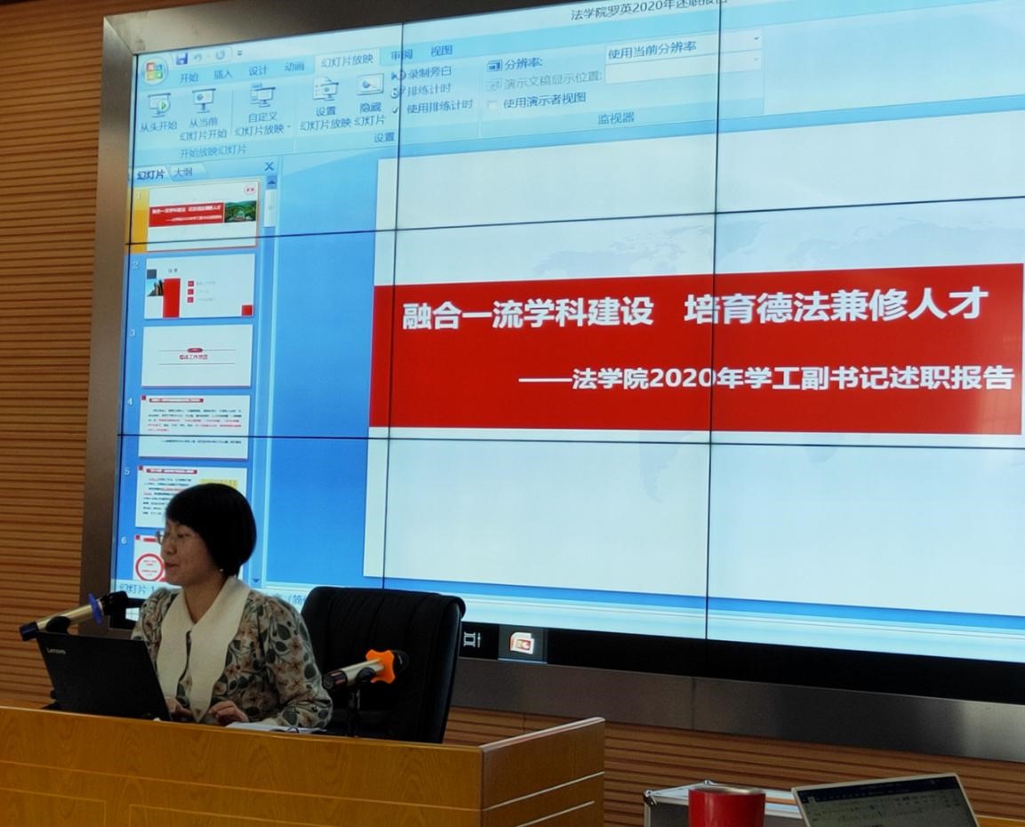 会上进行领导班子述职述廉。屈茂辉院长代表领导班子述职述廉并做个人述职述廉。易骆之书记、黎四奇副院长、罗英副书记、湛建云副院长总结了2020年各方面工作,介绍了自己履行岗位职责、执行党风廉政建设责任制等各方面情况。