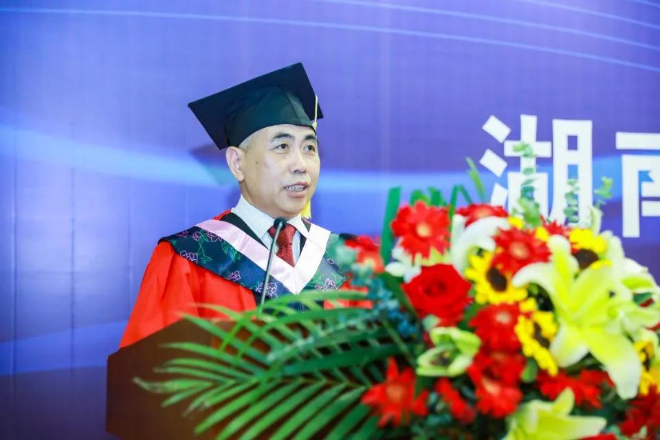 院长屈茂辉以“法行天下、不负韶华”为题做了毕业主题致辞。他代表学院向全体毕业生表达了祝贺与祝愿,向毕业生们分享了自己的法治思考和人生感悟。他提出,同学们在求学的这几年参与了一个伟大的法治时代,见证了“法安天下”的磅礴伟力,走向社会更要传播法治思维。“法治,小而言之是解决纠纷,维护权利。大而言之,是经世致用,治国理政”,他嘱托大家要积极使自己的法律知识精湛、掌握娴熟的法律技能,与此同时,还要注意自己身体素质的提升,使自己拥有强健的体魄、坚韧的耐力,圆融的情商和乐观的心态。“青春由磨砺而出彩,人生因奋斗而升华;毕业不是解放,而是一场更大的修行。”他祝愿同学战胜自我,突破旧我,在豪迈奋斗中不负青春、不负韶华,在法治中国的奉献中演绎新时代湖大人的精彩!