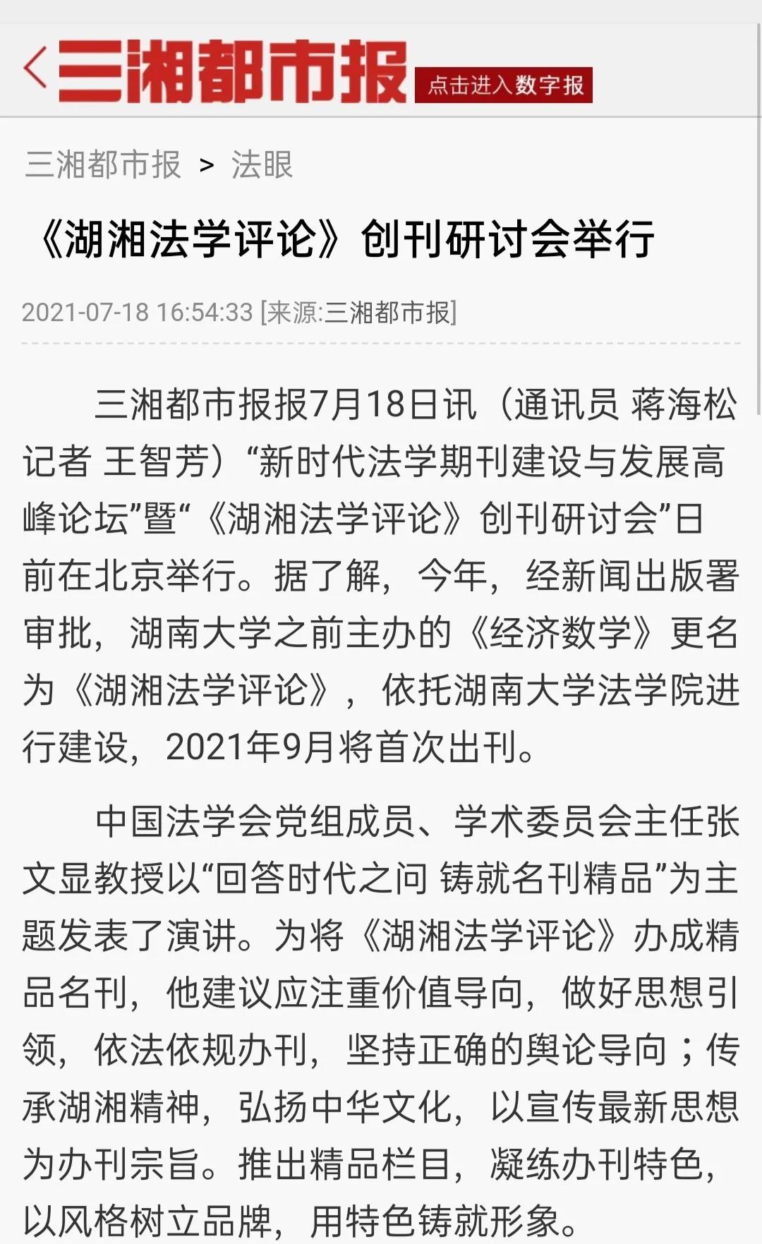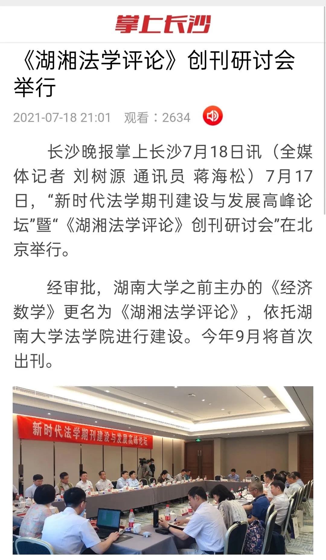 进行建设。2021年9月将首次出刊。《湖湘法学评论》将坚持正确的舆论导向和办刊方向,刊载法治建设理论成果和实践经验,突出实证研究特色,服务法学理论创新和法治中国建设。在《湖湘法学评论》创刊之际,举办研讨会,既为新刊的发展问计于各位专家教授,集思广益,也是为法学期刊界凝聚共识,推动创新发展。