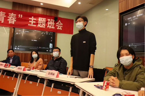 第一部分为梦想律动。法学2102班五名同学进行了名为《我们都是追梦人》的歌舞暖场表演,他们以动人的歌声,灵动的舞蹈,展示了少年时代的青春活力。同时,通过与在场师生的互动,调动了现场氛围,也为此次班会增添了一抹亮色。