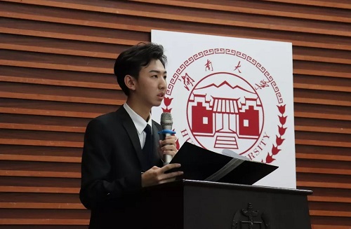 (学生会主席团候选人赵祎飞发表竞选演说)