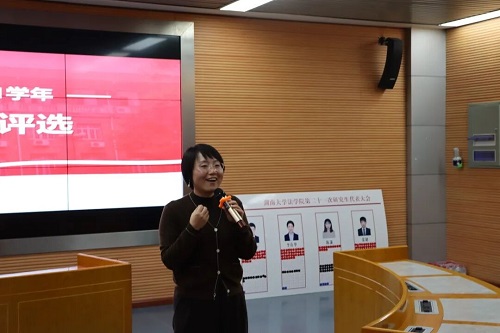 会上,各班代表按抽签顺序依次上台作“优秀班主任”答辩展示,分别从班级概况、学风建设、班级荣誉和班主任参与活动情况等方面展开,对各班在班主任带领下,班级建设取得的优秀成绩及读书会等活动的开展情况进行充分介绍。其中,2018级各班代表着重汇报了各班同学在保研、法考和竞赛方面取得的显著进步。从拔河比赛等文体活动,到案例研讨会、读书会等学术活动,再到中秋之夜的陪伴,各班班主任对班集体建设、发展倾注大量心血,并取得卓越成绩。