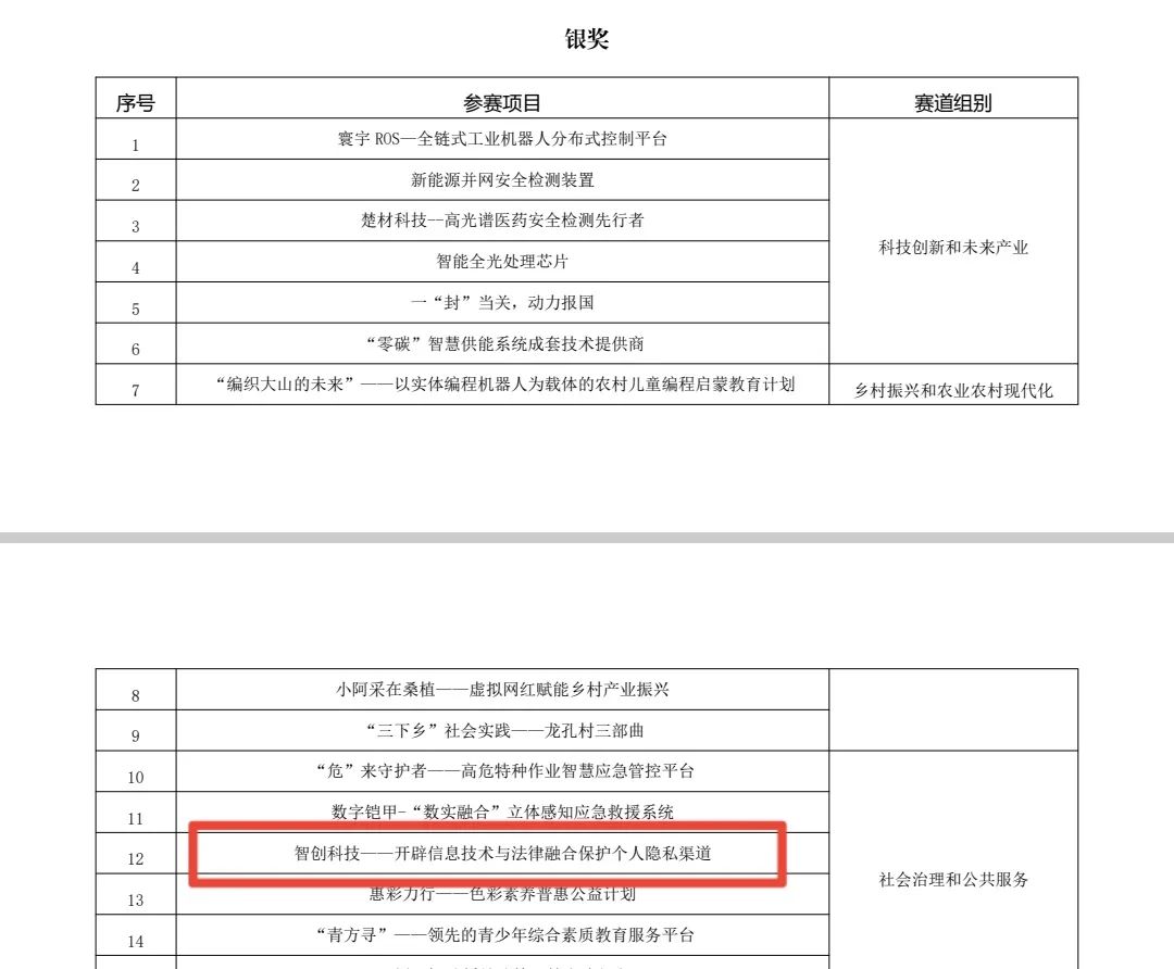 1905班朱雨欣同学主持申报、蒋海松、郑鹏程、张丹老师指导的社会治理和公共服务赛道项目“智创科技——开辟信息技术与法律融合保护个人隐私渠道”获银奖。该奖项的获得展示了调教动漫