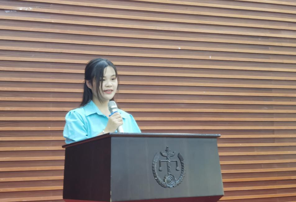 随后,2021级法律硕士纪检监察班符甜同学作为老生代表上台发言。符甜同学结合自己在湖大读书学习的经历,与同学们分享了感悟。首先,学习上以专为业。同学们可以把学习作为一种爱好融入到生活中去,多和老师聊聊未来的规划,多多尝试找到自己的专属答案。其次,勇于尝试突破舒适圈。必须重视法律实践,实践出真知,在脚踏实地的实践中去认识和体味真正的学问。