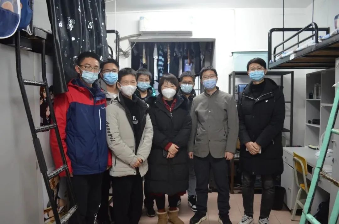 在走访过程中,老师们与同学们亲切交谈,了解了大家在课业学习和日常生活中的各方面情况,同学们亦积极分享了自己在学习生活中的心得体会。对于同学们关注的疫情防控、教学与期末考试安排等问题,老师们结合学校现阶段的安排给出了细致答复,也鼓励各位同学就教学安排、日程规划等问题积极建言献策。老师们也在走访过程中提醒同学们要做好寝室的卫生工作,叮嘱大家在冬日里注意防寒保暖。