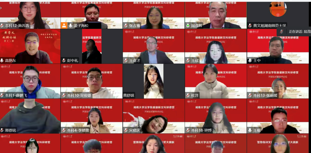 国际法研究所所长黄文旭、本科研修班班主任王聪老师、硕士研修班班主任王中老师以及全体新文科研修营学生成员共同参与开营仪式。