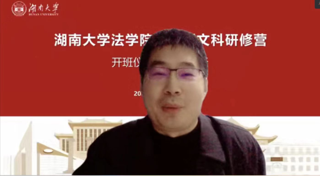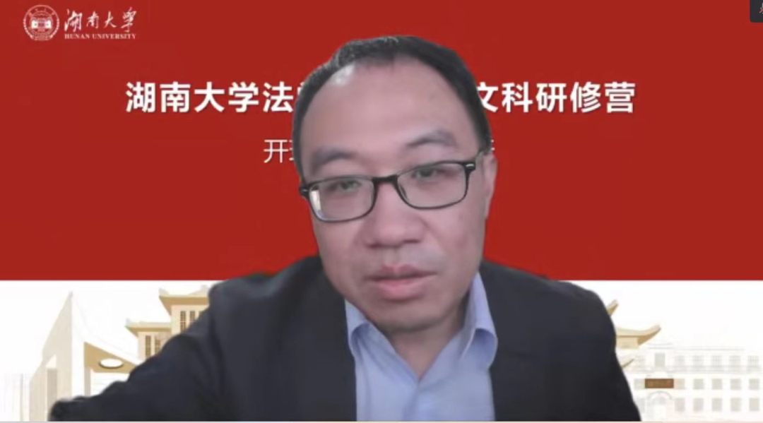 学位委员会主任、国家级新文科项目主持人屈茂辉教授致辞。屈茂辉教授介绍了研修班背景。基于新兴学科与法学的融合,传统文科需要紧跟经济社会发展的步伐,其中影响最大的便是信息技术的发展。新文科研修营主要采取云端方式,跳脱了传统班级的设置,吸纳了更多类型的人才。他指出,新时代的法科生应对两个问题作出回应“法律的计算问题和计算的法律问题”。他预祝新形式的研修班取得成功,同学们能学有所获,增进友谊,专家们能不吝赐教,并对大家的未来生活表达了美好祝愿。