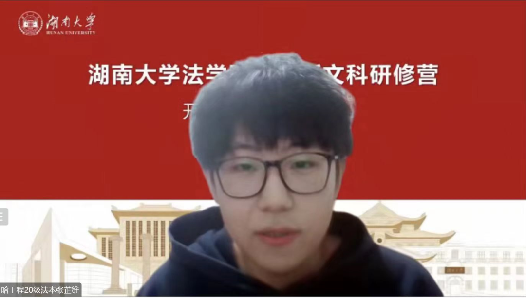 另外,除知识学习外,本人对本次会议还有一个印象和感触极为深刻的点——哈工程20级本科生张芷维同学。作为20级法学硕士研究生,听完张同学的发言,内心充满无限愧疚和反思……被张同学对学科前沿状态和动态的熟悉程度、积极了解和广泛参与全国范围内各大高校学术活动的主动性,以及在大三年级即已有的清晰的个人规划并将之付诸实践的行动力震撼……开始了自己在已有的n次对前6.5年法学学习成果质疑基础上的第n+1次质疑……法科修行之路还很漫长,继续努力……争做“法学+信息科学”的复合型“法治人才”,立志未来至少能为助推中国式现代化建设贡献一颗“沙砾力量”。