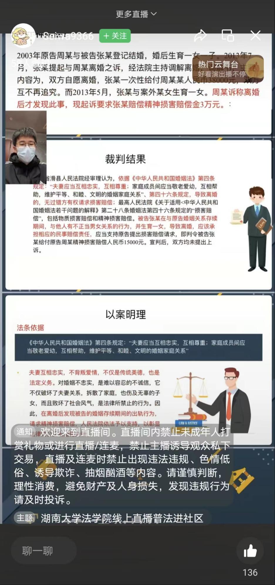此次直播主要围绕离婚纠纷、劳动纠纷、消费者权益这三部分展开。在具体讲解过程中,主讲人结合了多个典型案例进行说理,详细解答社区居民生活中密切关注的法律问题。同时,调教动漫