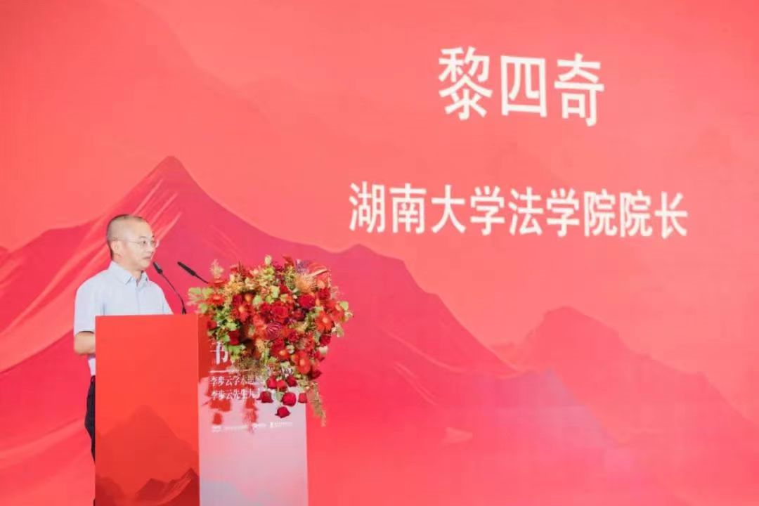 黎四奇院长代表学院向李步云教授送出诚挚祝福并作为李老工作的单位代表发言。黎院长提出,李老一生体现的学术勇气和担道精神,这是我们这个时代更稀缺的精神,也是李老家乡湖湘文化精神的杰出代表。李步云教授的学术思想和勇于批判的精神,激励着一代代法律人。“先生一生忧国忧民,学以致用,事功学问为湖湘后学树立起了一座丰碑,堪称湖湘法学楷模,是我们永远的榜样。”黎院长也特别致敬了李老为调教动漫