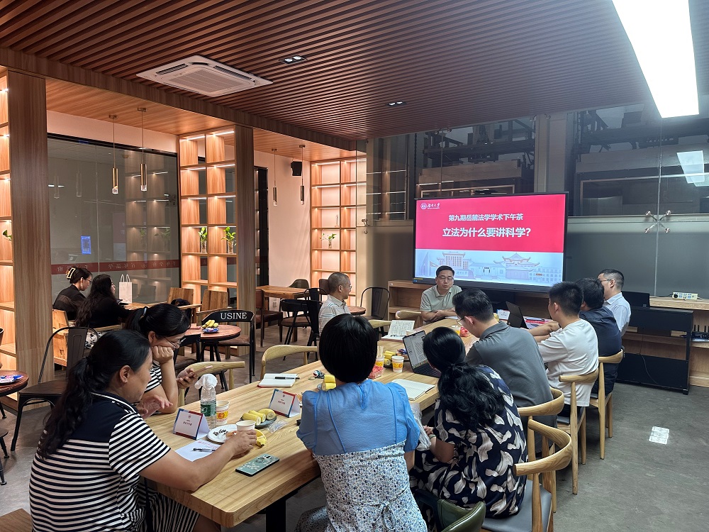 院长黎四奇教授出席活动并作开场致辞,王文胜教授主持开场环节。第九期学术下午茶主题围绕“立法为什么要讲科学”展开,由汪全军副教授主题分享,学院将近20名师生参加了本次活动。