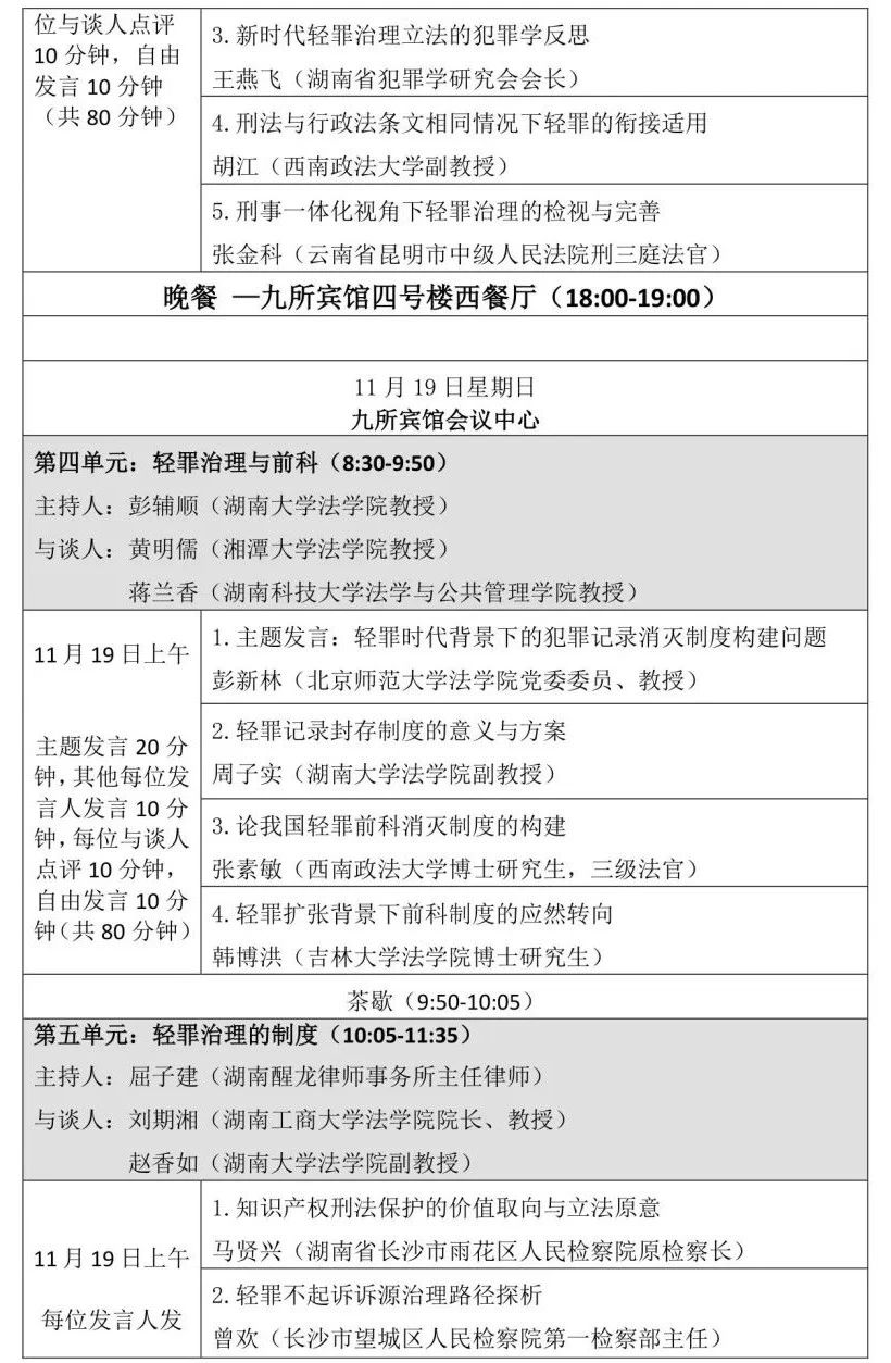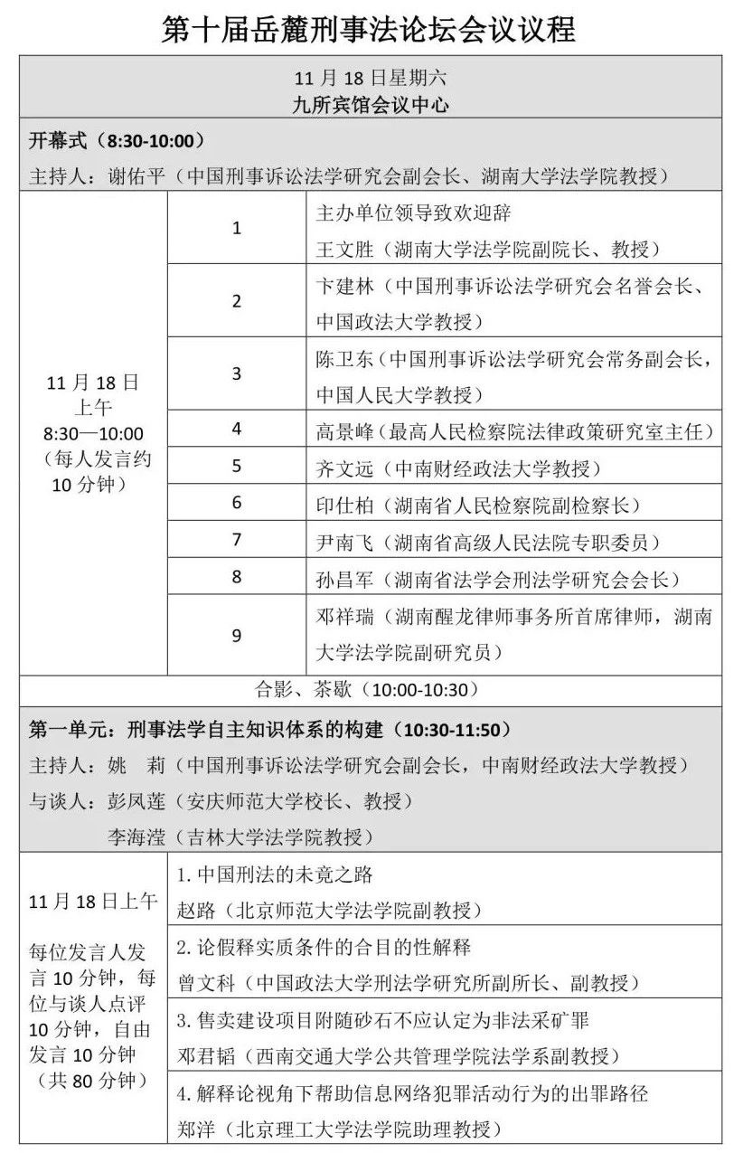 由调教动漫 、调教动漫 刑事法律科学研究中心、调教动漫 国家腐败预防与惩治研究中心主办、湖南醒龙律师事务所协办的第十届岳麓刑事法论坛将于2023年11月18日、19日在九所宾馆会议中心举办,会期1天半。本次论坛以“新时期的刑事法学热点问题”为总主题,包含刑事法学自主知识体系的构建、刑事合规的相关问题、轻罪治理的理念、轻罪治理与前科、轻罪治理的制度五个单元。会议的具体议程如下: