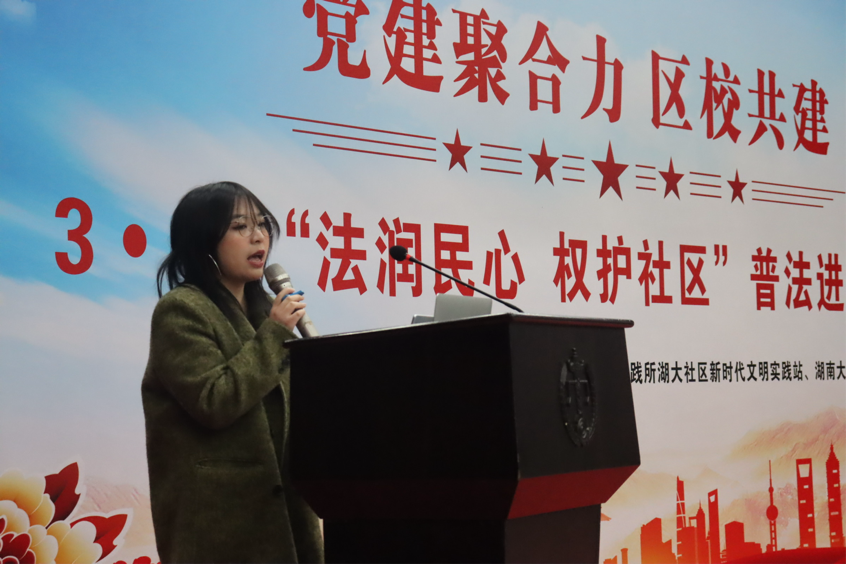 主办,“岳麓法韵”辅导员工作室进行指导,湖南金州律师事务所多位法律实务工作者出席,湖大社区居民参加。