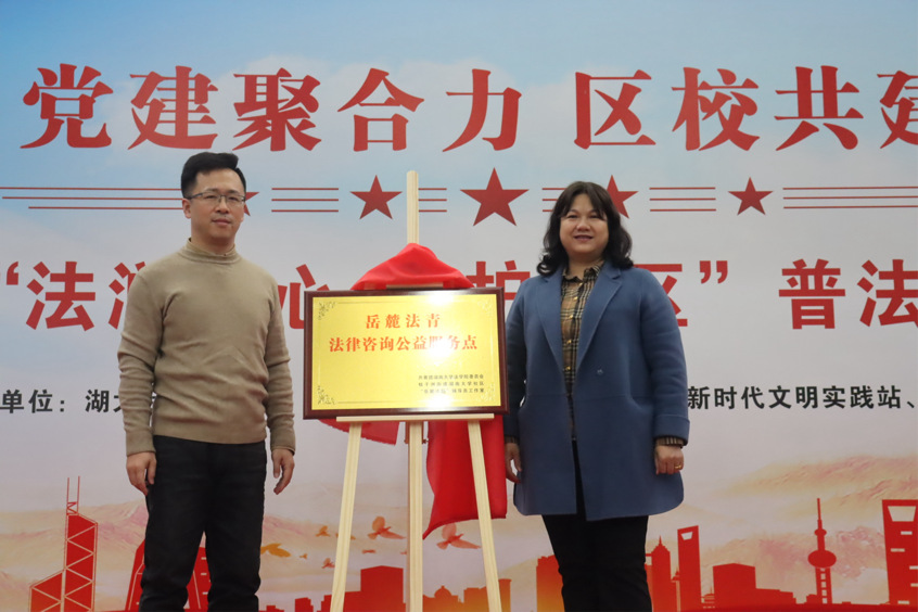 团委、“岳麓法韵”辅导员工作室与湖大社区合作设立“岳麓法青法律咨询公益服务点”,并由刘岳峰老师与夏运枚主任共同揭牌。这支由高校师生组成的队伍,将常态化开展法律咨询公益志愿服务,以专业守护公平,用热情服务民生,为居民学法、守法、用法提供最便捷的法律服务。
