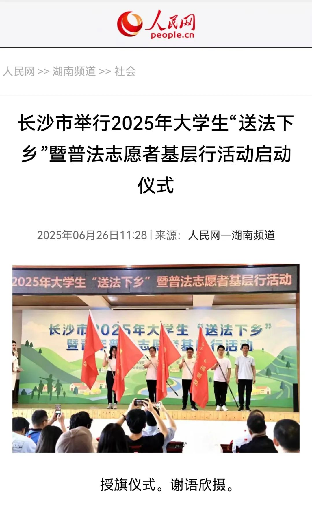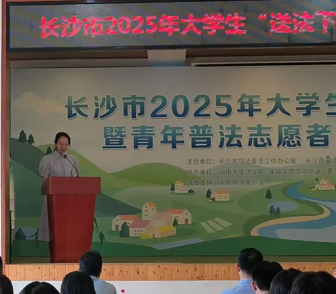 2025年6月25日,长沙市2025年大学生“送法下乡”暨普法志愿者基层行活动顺利开展。本次活动是由长沙市守法普法工作办公室、长沙市司法局、开福区司法局主办,由调教动漫