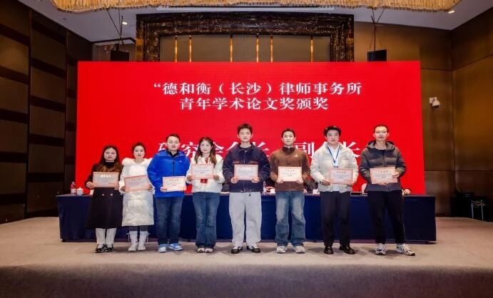 大会闭幕式阶段由新一届理事会副会长、湖南省律师协会会长、湖南湘军麓和律师事务所李含英主任主持。新一届理事会副会长、湖南工商大学蒋科教授宣读“德和衡(长沙)律师事务所青年学术论文奖”的获奖名单,研究会各位领导给获奖者颁奖。屈茂辉教授对本次年会活动作会议总结,并再次向与会人员和会务人员表达衷心的感谢与新年祝福。