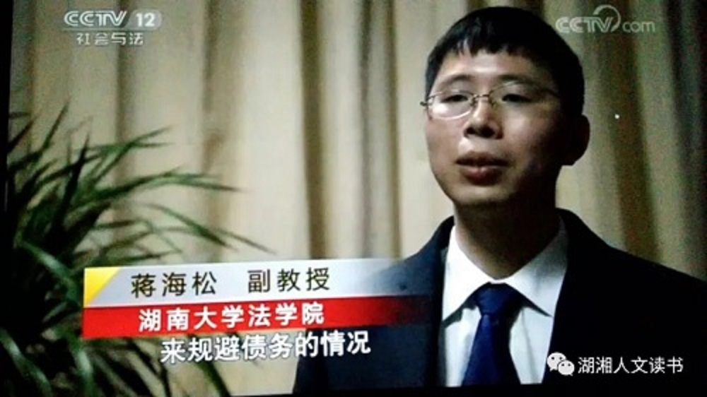 此外,蒋海松老师也曾在湖南经视《钟山说法》栏目讨论夫妻债务问题,呼吁不要机械适用婚姻法解释(二)24条,而应更公平处理夫妻债务问题。蒋老师曾六次获邀做客该栏目。