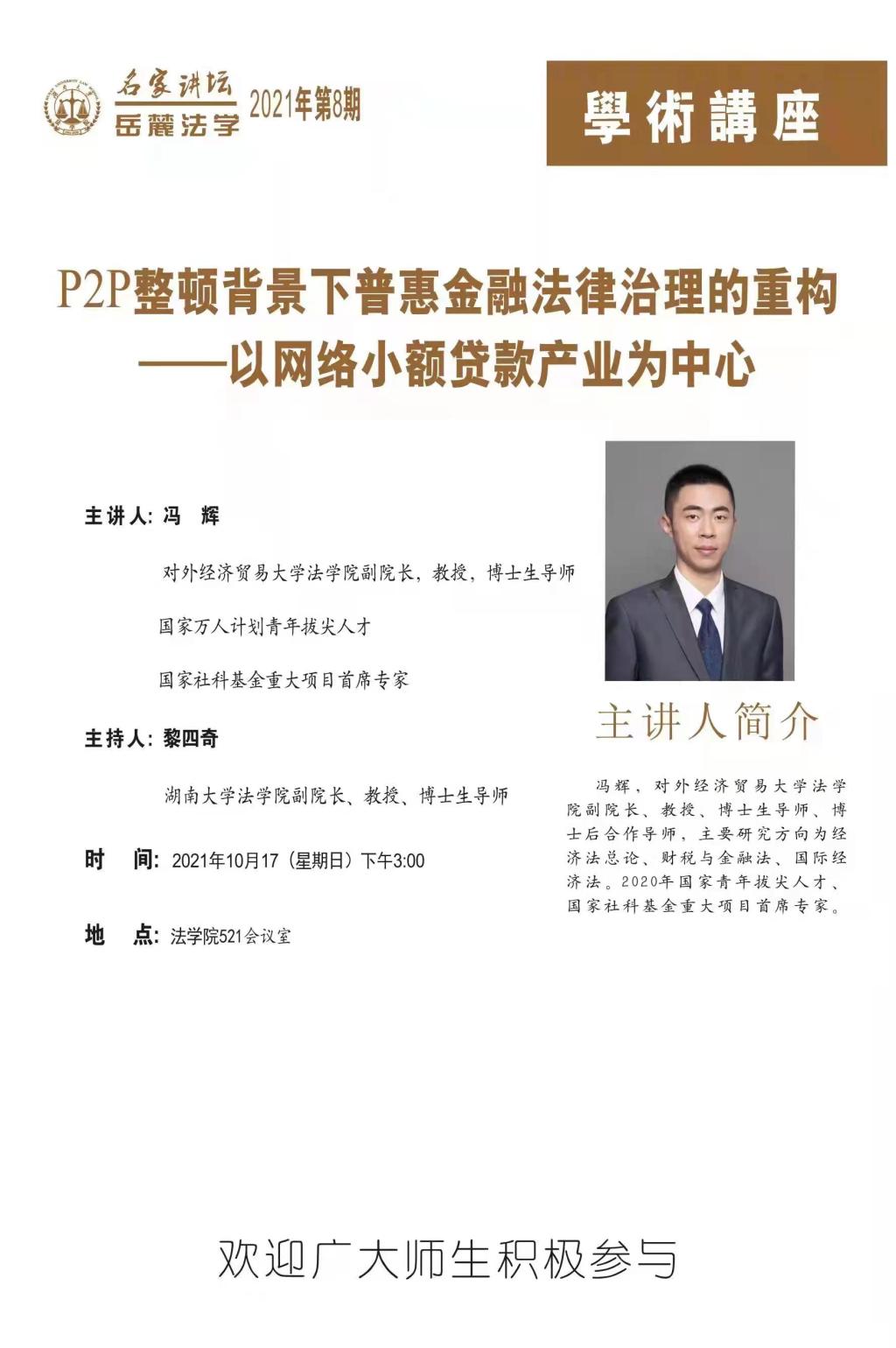 主题:P2P整顿背景下普惠金融法律治理的重构——以网络小额贷款产业为中心
