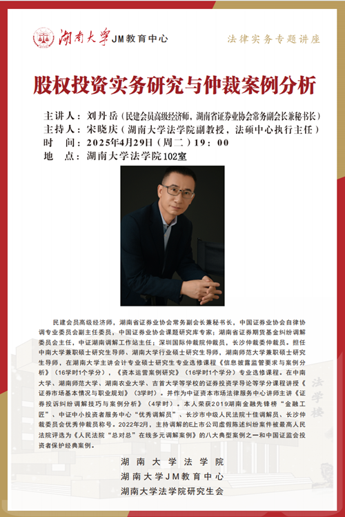 本次JM实务讲座邀请到民建会员高级经济师,湖南省证券业协会常务副会长兼秘书长——刘丹岳,为大家讲述股权投资实务研究与仲裁案例分析,帮助大家了解相关实务问题,调教动漫