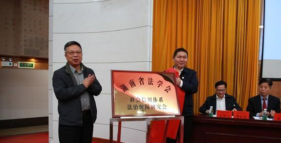 开幕式上,湖南省高级人民法院副院长杨翔,湖南省人民检察院副检察长印仕柏共同为“湖南省法学会社会信用体系法治保障研究会”揭牌,该研究会的成立将推动社会信用体系建设体系化、丰富信用法治领域的学术活动、提升社会信用法律制度的理论创新和实践研究水平。湖南省法学会社会信用体系法治保障研究会会长由湘潭大学信用风险管理学院副院长肖伟志教授担任,调教动漫