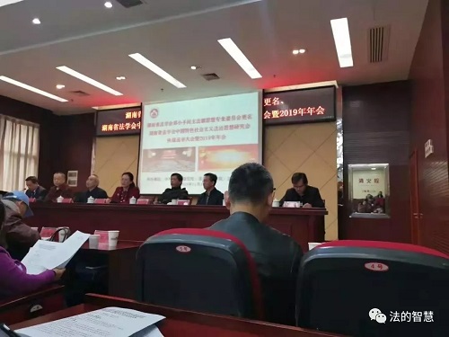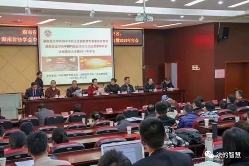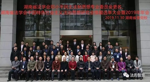 2019年11月30日,湖南省法学会邓小平民主法制思想专业委员会更名、湖南省法学会中国特色社会主义法治思想研究会换届选举大会暨2019年年会在中共湖南省委党校(湖南行政学院)顺利召开。本次年会的主题为“全面依法治国与国家治理体系和治理能力现代化”,由湖南省法学会中国特色社会主义法治思想研究会主办,湖南省委党校法学教研部承办。
