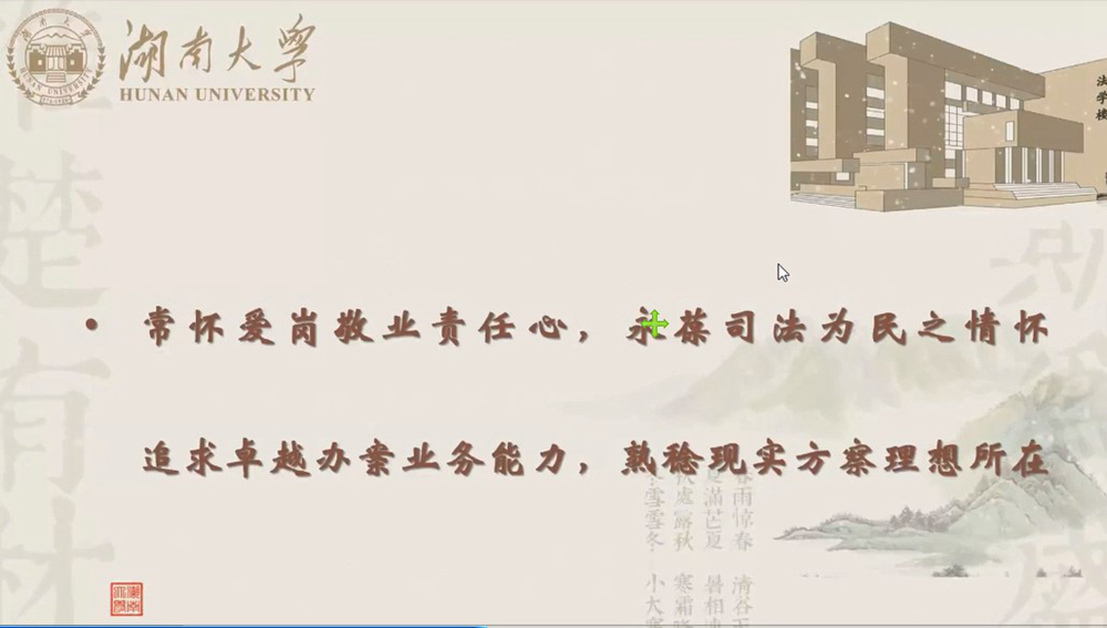 第二届优秀学生“赴港交流营”等;在实习方面,她从衣、食、住、行四个方面为我们一一介绍。就专业实践而言,她被分配至国家赔偿委员会办公室工作。在实习期间,实行实习导师制,由经验丰富的资深法官担任指导老师。法律实习生在实习期间担任实习法官助理、书记员或综合工作人员,在指导老师的帮助下,辅助参与案件审理、案件记录、文书起草、司法调研及司法行政等工作。最后,杨凌燕谈到,希望大家“常怀爱岗敬业责任心,永葆司法为民之情怀。追求卓越办案业务能力,熟稔现实方案理想之所在”!