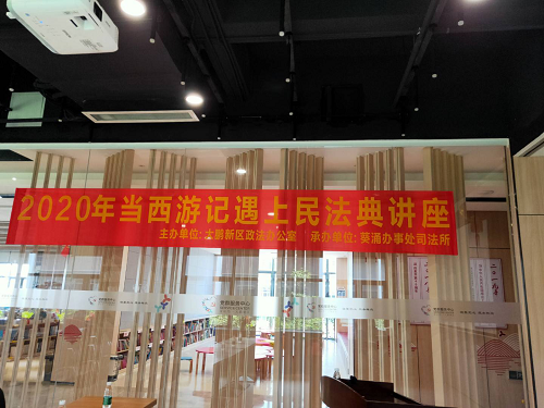 2020年8月6日下午,由深圳市大鹏新区政法办主办、葵涌办事处平安建设办(司法所)承办的《当<西游记>遇上民法典》法律知识专题宣讲活动在大鹏新区党群服务中心党建书吧精彩开讲,活动特别邀请了中国大学慕课《法说西游记》主讲人蒋海松副教授对辖区青少年及家长开展法治宣传教育活动。蒋海松结合《西游记》故事,对民法典的重要条文和民法原则进行趣味化讲解,在场孩子们听得津津有味。