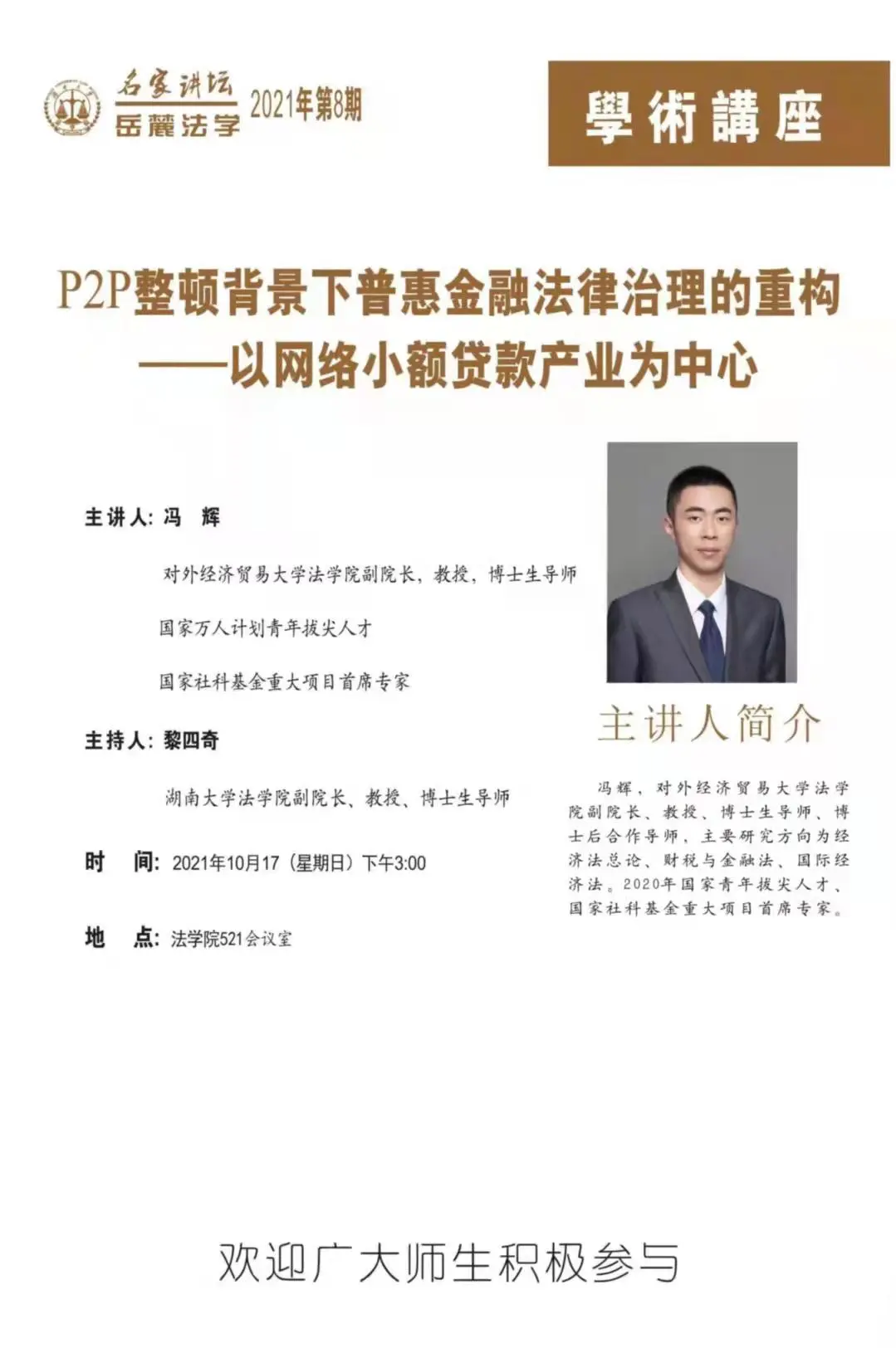 521会议室带来以“P2P整顿背景下普惠金融法律治理的重构——以网络小额贷款产业为中心”为主题的精彩的学术讲座。此次讲座由调教动漫