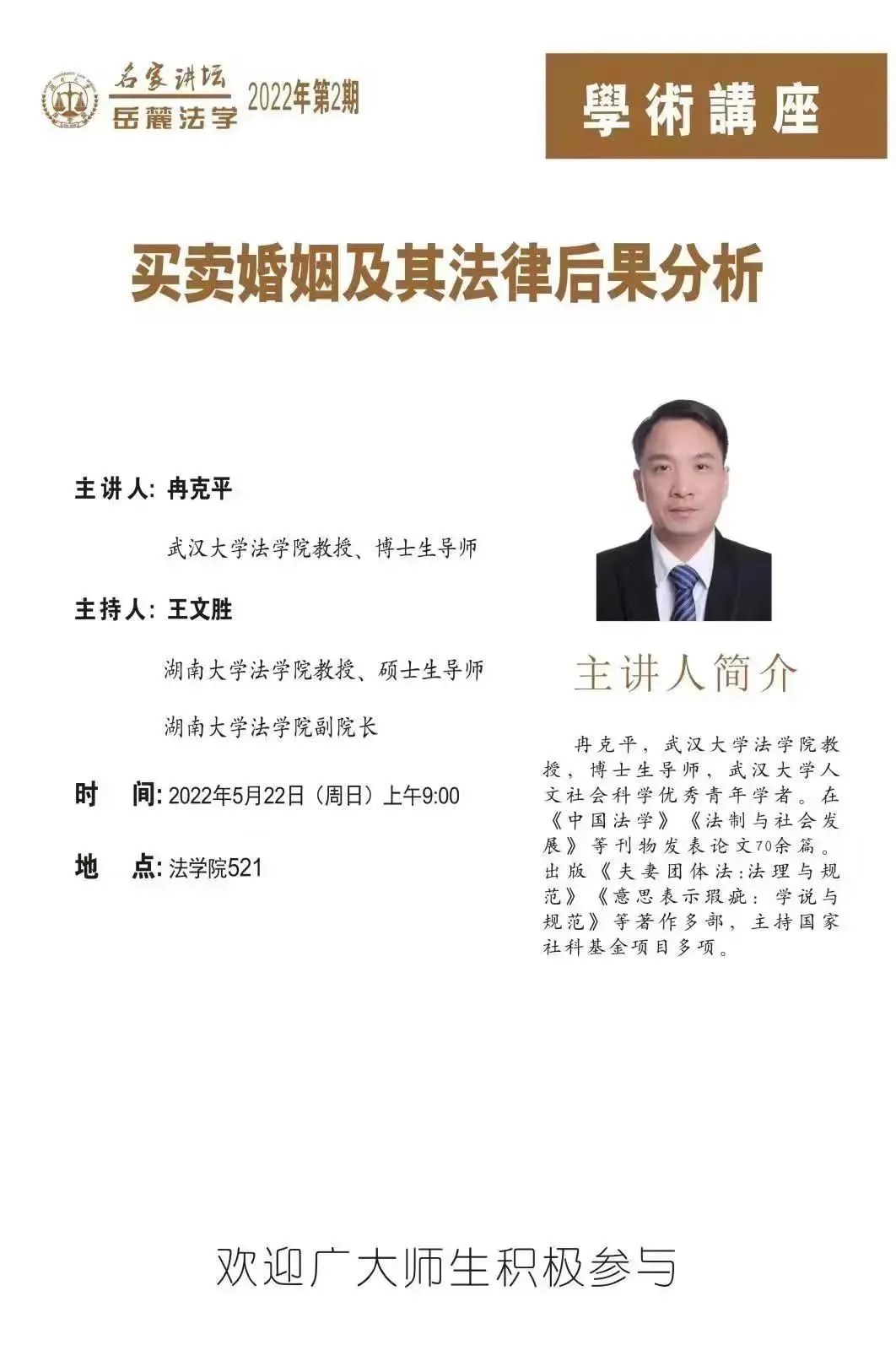 教授、博士生导师冉克平应邀为同学们带来题为“买卖婚姻及其法律后果的分析”的专题讲座。讲座由调教动漫