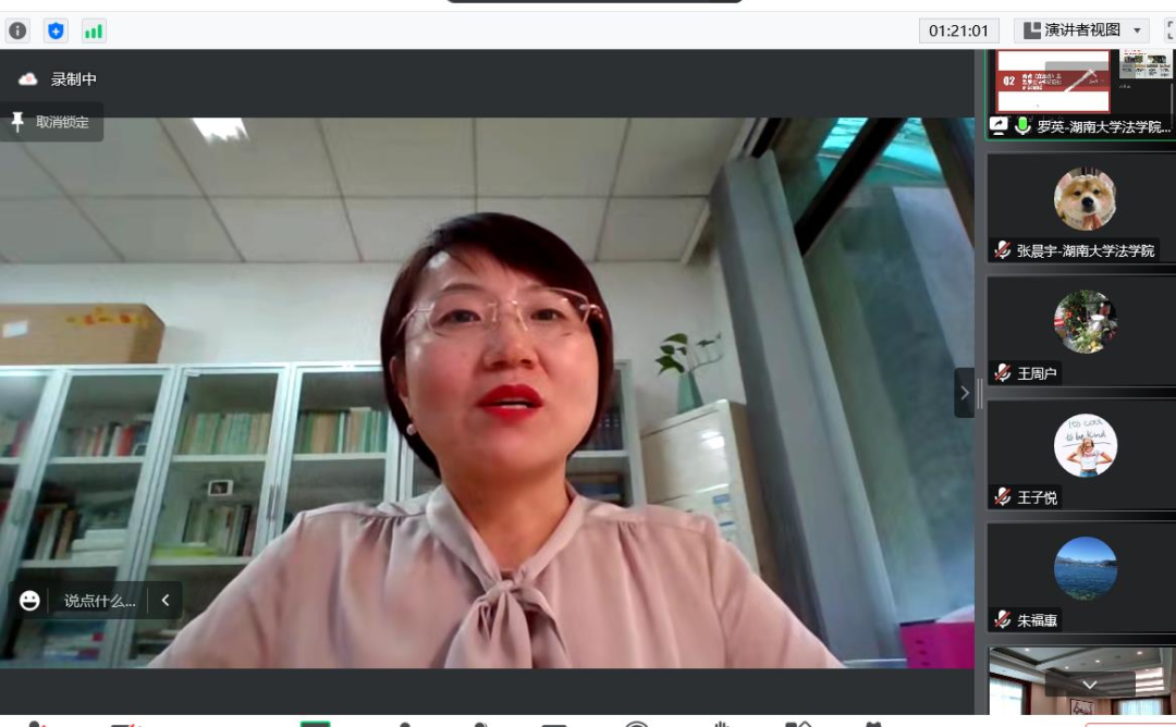 纪检监察学院的建设情况对此次发言的主题选择进行了解释。其次,从形式法治和实质法治两方面,对修改立法法是实现监察立法权规范化的最优解做了阐释。在形式法治方面,她对现有的修改方案进行分析,指出修改立法法更有助于实现立法权配置结果的公平性和有效性,在技术层面能够实现技术可行性的最大化。在实质法治层面,她从修改立法法是立法工作者所认可的低位阶决定内容固定化的最终表现形式;修改立法法的适用场域聚焦于国家层面的法律规范,由立法法赋予监察立法权的底层逻辑,符合监察法治的原理;通过修改立法法来明确监察立法权本身具备宪制合理性,与我国新设立法权限以法律形式予以确认的惯例一脉相承;立法法的修改频次和实现契合于最短实现内实现监察立法权规范化表达的现实目标等四个方面,对修改立法法在实质法治层面的优越性进行了总结。最后,她对于具体条款的拟定做了报告。