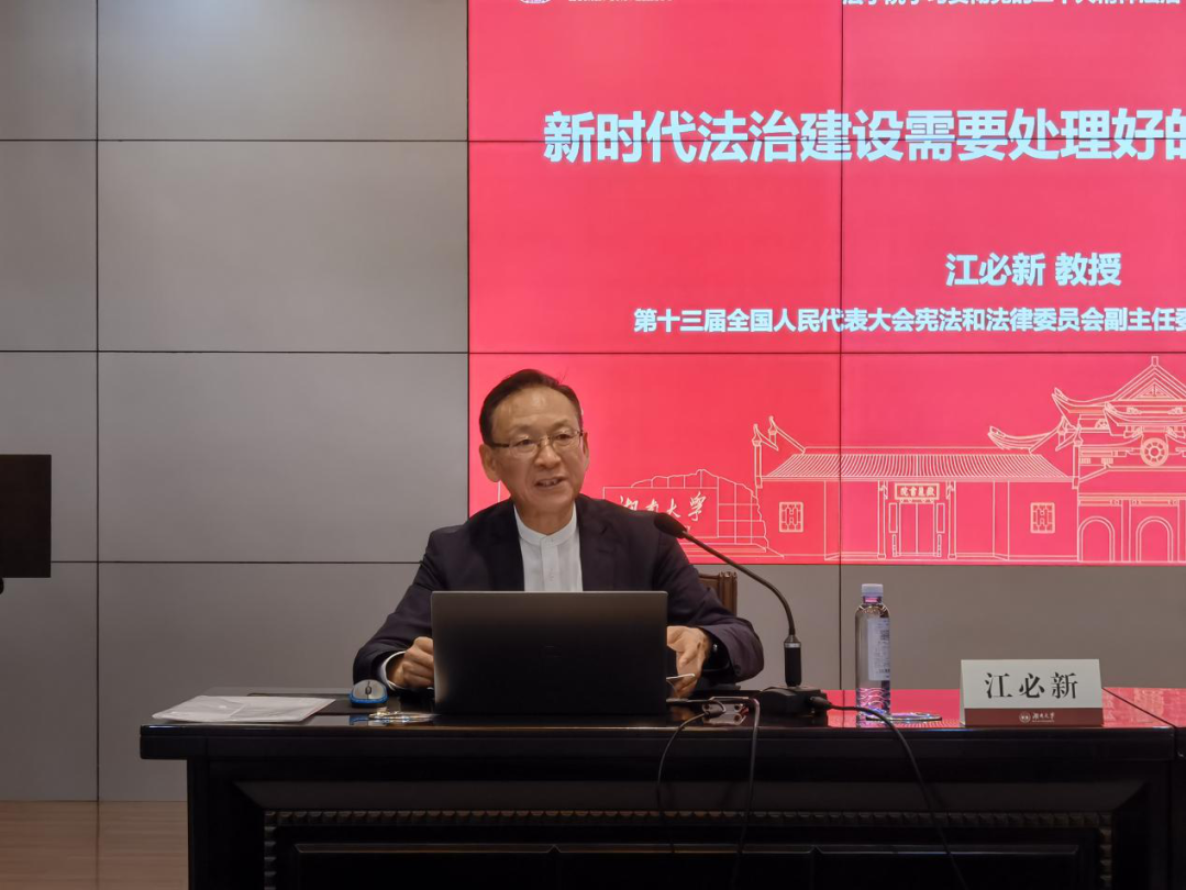开场后,黎四奇院长重点介绍了江必新教授。江必新教授系第十三届全国人民代表大会宪法和法律委员会副主任委员,兼任中国法学会副会长,曾担任最高人民法院党组副书记,副院长。江必新教授在《中国社会科学》《求是》《中国法学》《法学研究》等刊物发表论文200余篇,出版著作多部,主持国家社科基金重大项目等多项课题,曾于1999年被评为“全国十大杰出中青年法学家”、2009年被评为“当代中国法学名家”,2015年获中国行政法学“杰出贡献奖”、2016年获第二届“金平法学成就奖”,是贯通理论与实践、用学术智识推动法治进步的学者典范。