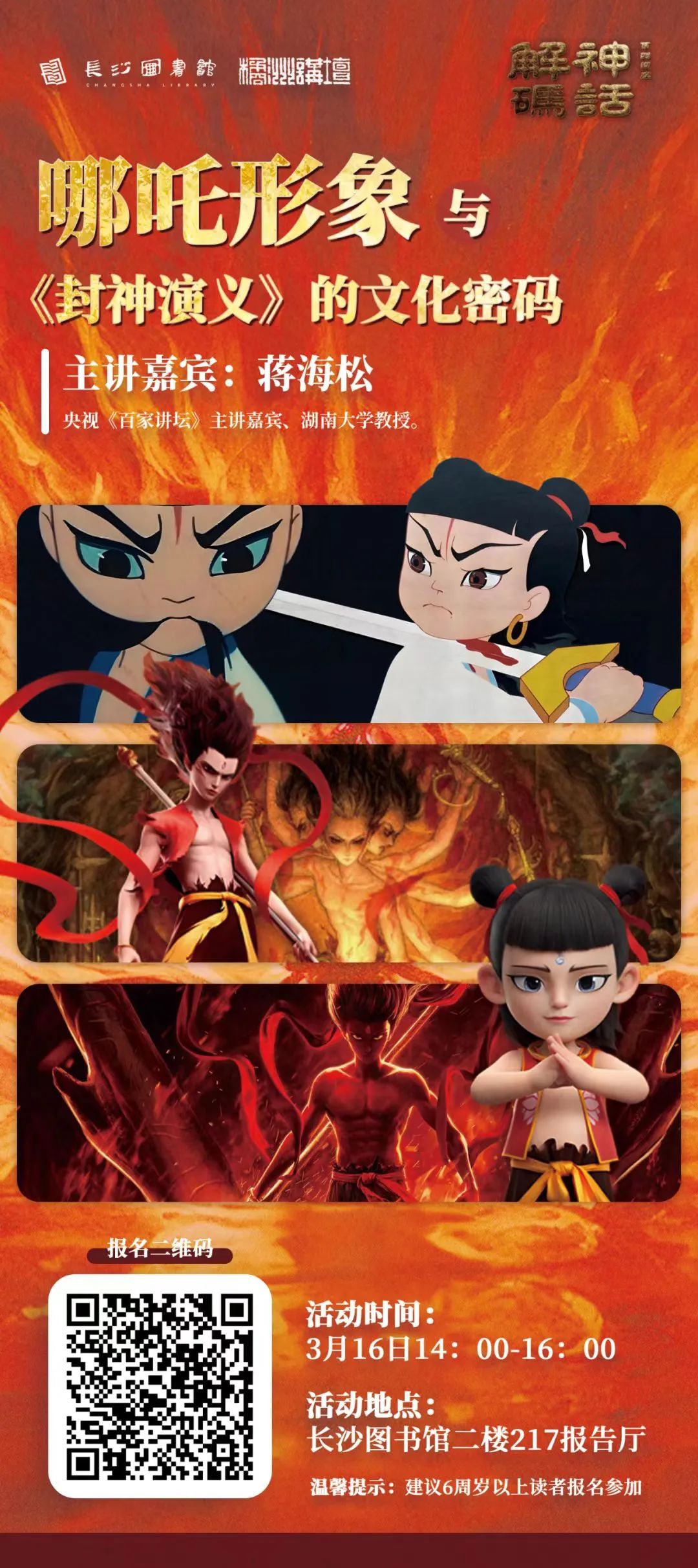 值得一提的是,长沙市图书馆后续活动“干货”满满,解码神话系列讲座即将登场:3月29日下午,郭晓东携《山海经捉妖记》等著作,带大家闯入《山海经》奇幻天地;5月上旬,湖南省博物馆研究馆员郑曙斌解码马王堆T形帛画生命神话;5月下旬,孙见琨解读《封神演义》。感兴趣市民可以提前预约参与,共赴神秘神话探索之旅。