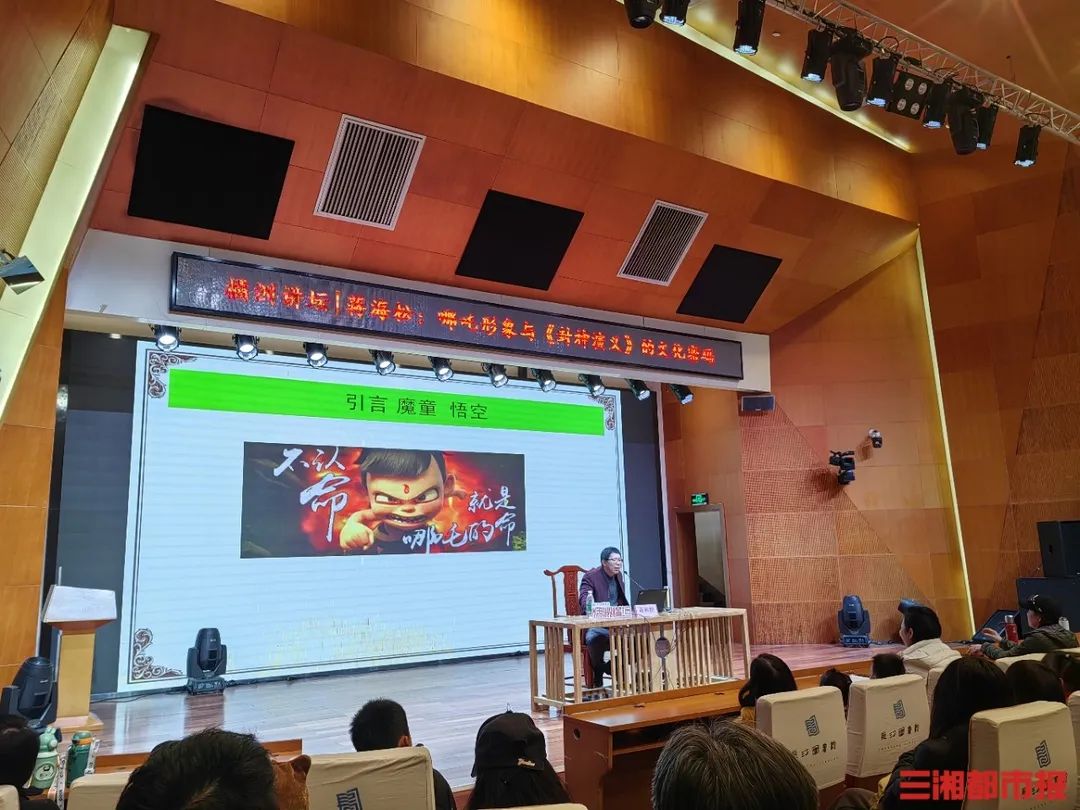 蒋海松从哪吒神话起源娓娓道来,“哪吒并非一开始就是手持乾坤圈、脚踏风火轮的少年,其形象历经中外文化冲突交融,从佛教经典走进中国并逐步定型,承载着厚重历史文化价值。”蒋海松紧扣爆款动画《哪吒之魔童降世》《哪吒之魔童闹海》,对比不同时期、形式影视作品里的哪吒,阐述“讲述故事的年代”对读懂神话文化内涵的关键意义。从民间戏剧、连环画再到动画电影,哪吒形象在媒介更迭中传承演变,台下听众沉浸其中,跟随讲解回溯哪吒成长轨迹,不时为新奇知识惊叹鼓掌。