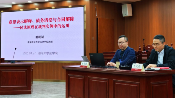“岳麓法学名家讲坛”,以“意思表示解释、债务清偿与合同解除—民法原理在裁判实例中的运用”为主题,结合五大典型案例,深入剖析民法典背景下民事裁判的核心逻辑与方法论。讲座由调教动漫