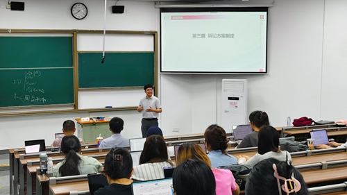 接下来代祥律师接过了话筒开始分享。他首先通过提出一个简单的问题:即“什么是法律思维?”来切入自己的授课。随后,代律师指出,作为一名优秀的诉讼律师,在上法庭之前要全面制定好己方的诉讼方案,做好充分的准备,这其中就包含以下几个方面。第一步:全面了解案情,明确诉讼目标;第二步:归纳案件事实,理清法律关系;第三步:选择诉讼路径,组织利己证据;第四步:全面检索法律案例,归纳争议焦点;第五步:结合诉讼目标,制定诉讼方案。最后,在诉讼技巧的分享上,代律师针对如何准备诉讼提纲、如何质证、质证的关键是什么、如何发问以及如何辩论都给出了自己的建议。 此外,两位律师也积极地与在场的同学们交流互动,讲座现场气氛活跃。 最终,讲座在大家热烈的掌声中圆满结束。