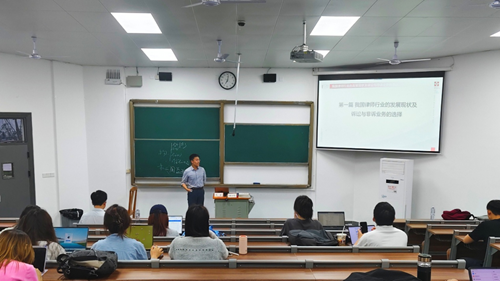 讲座由胡宇哲律师率先开讲。胡律师首先通过详实数据分析了我国律师行业的发展现状。胡律师指出,诉讼业务仍是多数律所的主要收入来源,且是培养律师综合能力的“试金石”,但非诉业务(如企业并购、法律顾问)亦呈现快速增长趋势。他基于自身经历,建议同学们在以后职业发展道路上根据自身资源和专长,结合自身兴趣,实现业务领域的精准定位。随后,胡律师进一步谈到了成为一名优秀的律师所应具备的要素。他指出,一名优秀的律师应该具备的要素包括三种能力与三种态度:三种能力有专业能力、表达能力和开拓能力,三种态度则包括终身学习态度、精益求精的态度与独立思考的态度。此外,胡律师还指出作为诉讼律师还要明白法官的审判思维,这其中就包括法律关系思维与请求权基础思维。最后,胡律师结合自身的经历,从诉前、庭审中与庭审后详细分享了一些经典实用的诉讼防踩坑指南。