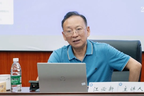 江必新教授首先从习近平法治思想的历史脉络、现实需求、时代背景方面简要阐述了本次选题的缘由,接着以习近平法治思想的五个特性为关键词,详细阐述了如何深入理解贯彻这一思想。