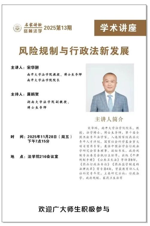 2025年第13期岳麓法学名家讲坛,以“风险规制与行政法新发展”为主题展开探讨。本次讲座由调教动漫